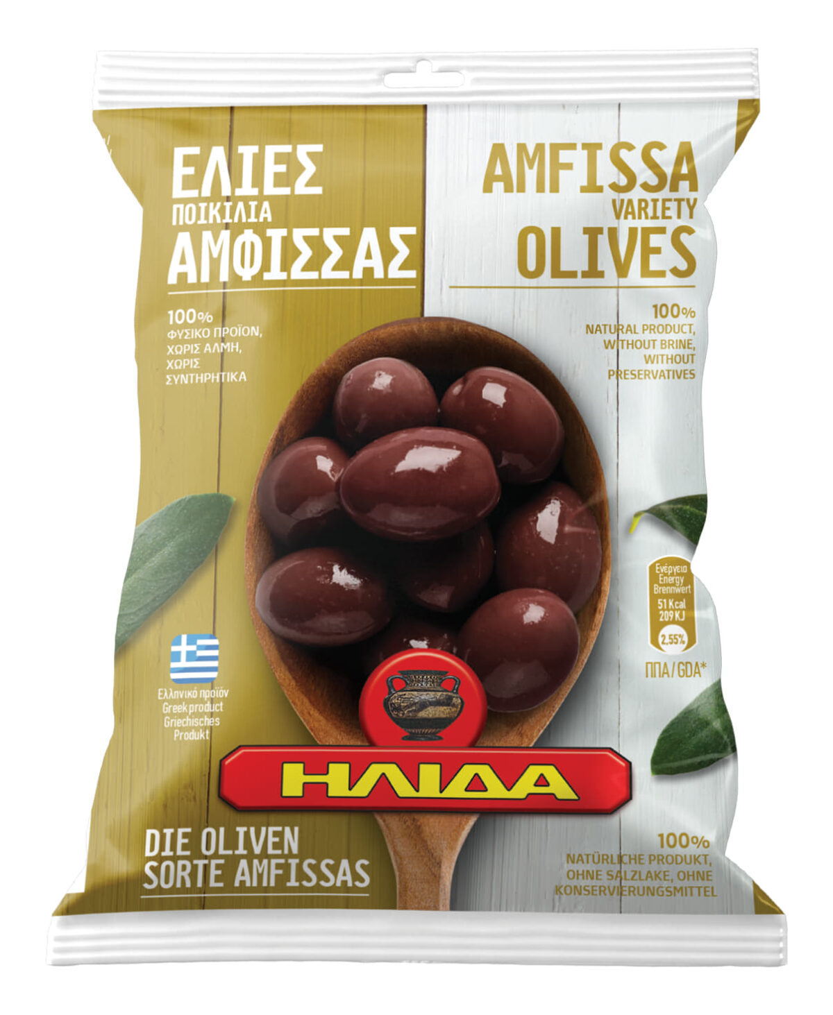 Ελιές Άμφισσας με ελαιόλαδο, ξύδι & ρίγανη 250 γραμ. Καθ. Βάρος ( κιβώτιο 12 τεμαχίων )