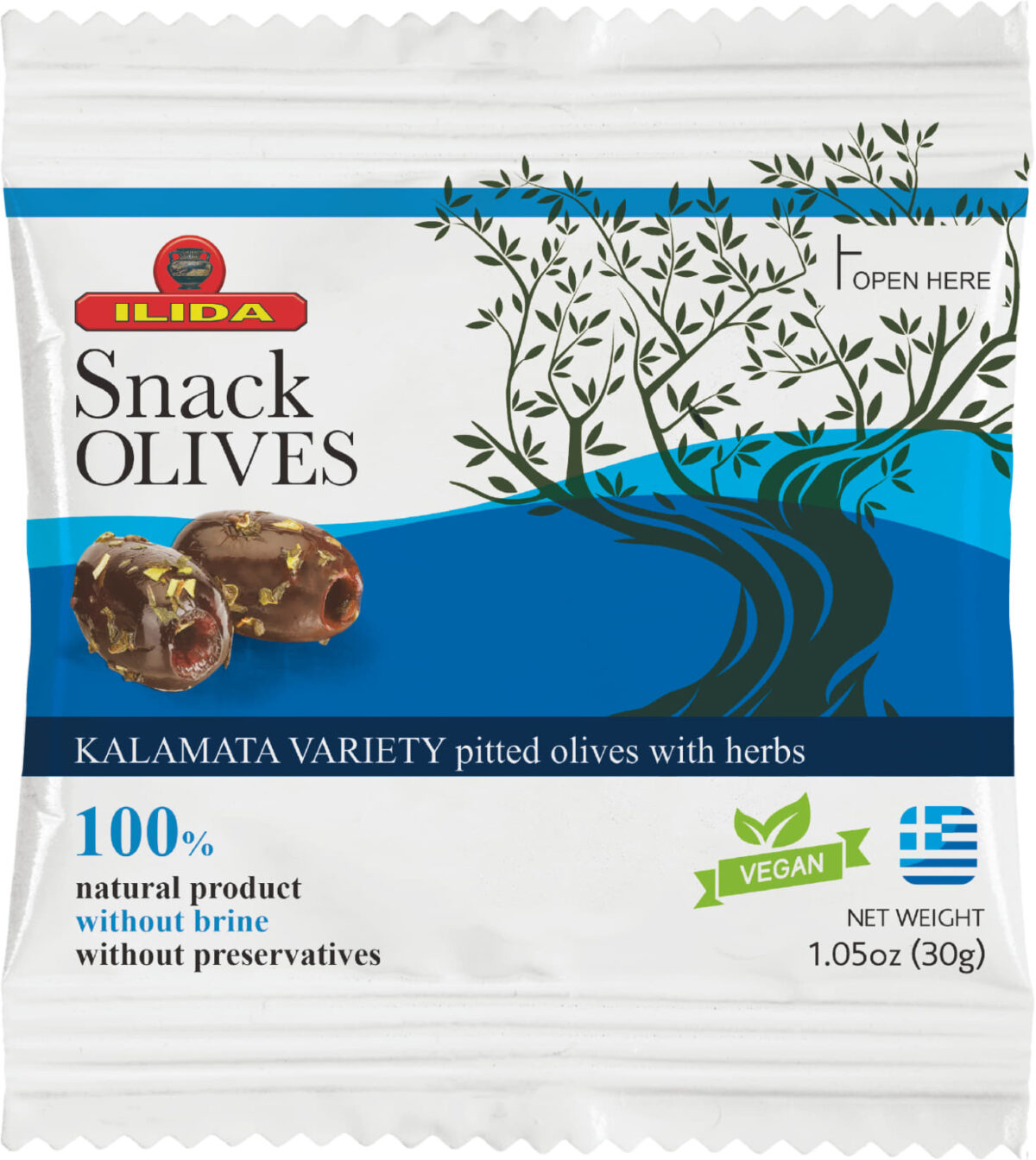 Ελιές καλαμών χωρίς κουκούτσι με μυρωδικά 30 γραμ. ( κιβώτιο 15 τεμαχίων)